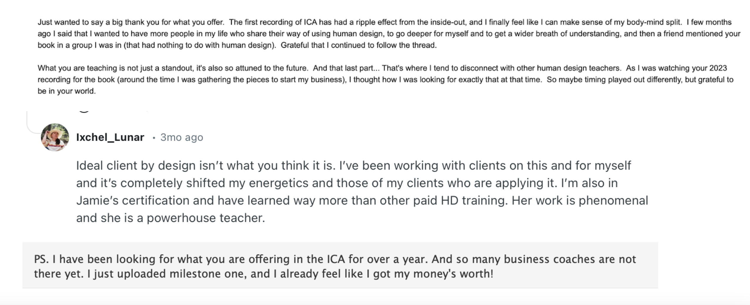 Launching in May — an AI agent trained exclusively on Jamie’s Ideal Client teachings. When you have a question about how to apply the methodology to a specific client’s chart, you have a resource built from this specific body of work. Not generic Human Design content. Not a chatbot trained on the internet. This methodology.